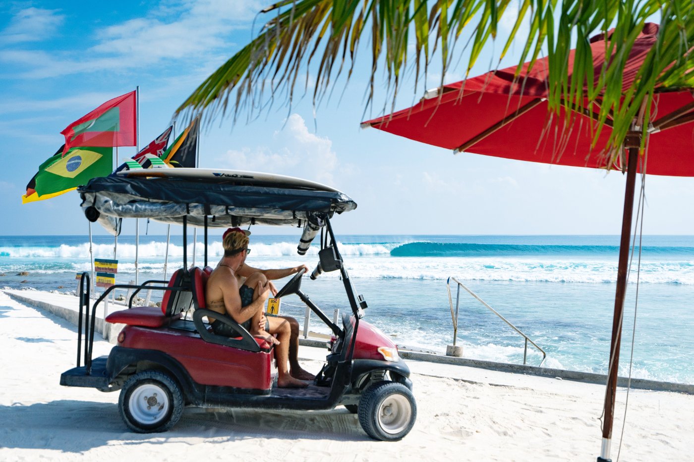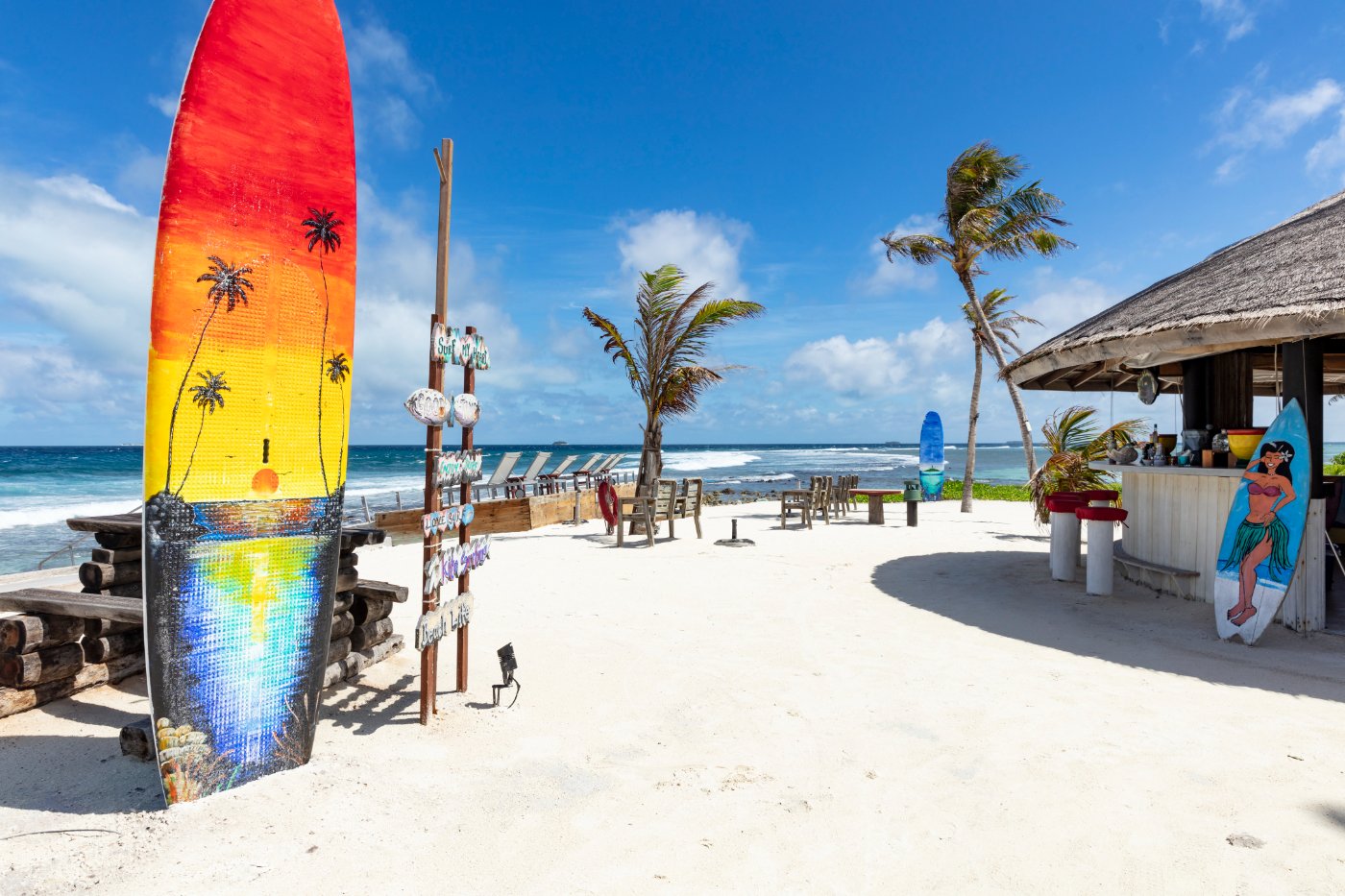 Modern Maldivian, with sunrise views and direct beach access.