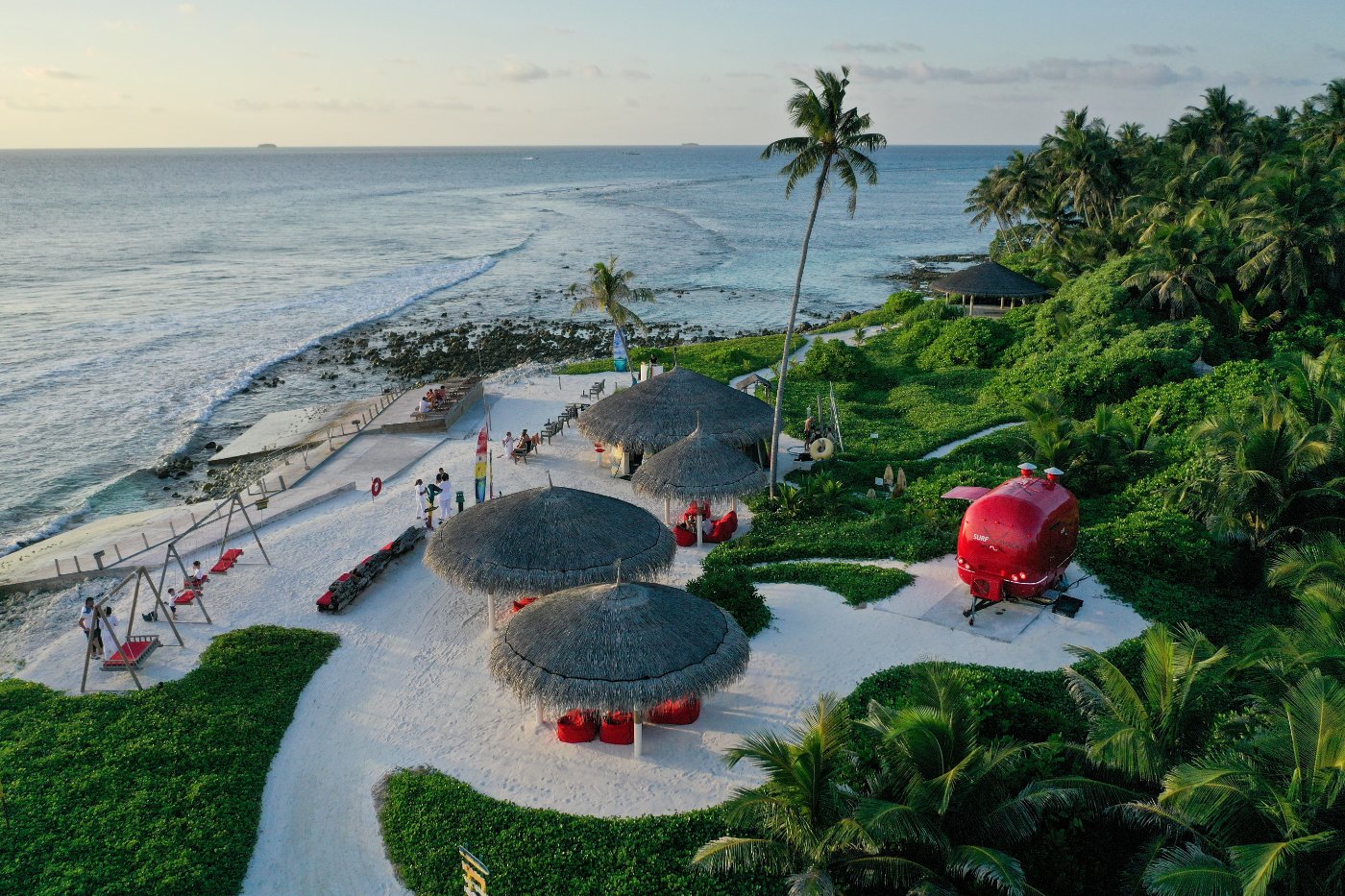 A collection of 134 villas, suites and pavilions, dotting both Islands and extending out over the lagoon.